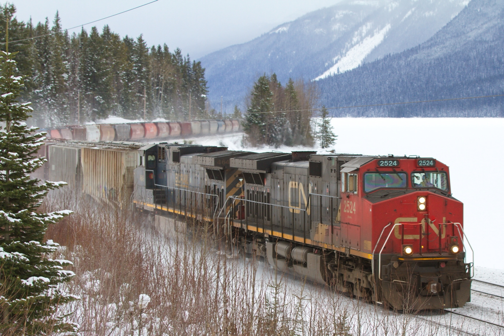 In Blue River BC versuchte ich trotz heftigstem Schneefall und tief eingeschneiten Strassen an die Geleise zu gelangen. Was mir auch gelang, jedoch ohne einen Zug anzutreffen. Glück hatte ich insofern, dass CN an diesem Bahnhof zwei Dieselloks wohl als Reserve stehen hatte. Trotz Sorge um meinen Fotoapparat, der innert kürzester Zeit pflotschnass war, schoss ich ein paar Dutzend Fotos.